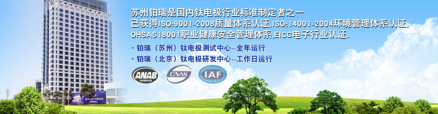 蘇州市鉑瑞工業(yè)材料科技有限公司是一家擁有自營(yíng)進(jìn)出口權(quán)的高新技術(shù)民營(yíng)企業(yè),專業(yè)致力于混合金屬氧化物涂層鈦電極的生產(chǎn),向全球用戶提供高品質(zhì)的鈦陽(yáng)極產(chǎn)品,是全球領(lǐng)先的鍍鉑鈦陽(yáng)極制造企業(yè)。同時(shí)提供先進(jìn)的電鍍、電解技術(shù),推進(jìn)電化學(xué)領(lǐng)域的高效、節(jié)能與潔凈。